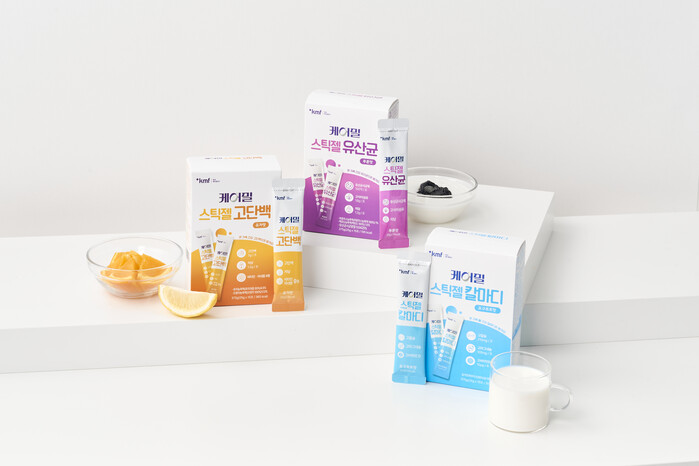 '케어밀 스틱젤 3종 선물세트'는 ▲칼슘·마그네슘·비타민D를 함유한 '칼마디' ▲단백질과 콜라겐을 담은 '고단백' ▲유산균 100억 CFU(Colony Forming Unit, 집락형성단위)를 함유한 '유산균'으로 구성된 제품이다. 뼈·근육·장 건강을 함께 고려한 복합 영양 설계가 특징이며 스틱형 젤 타입으로 제작돼 야외 활동이나 이동 중에도 섭취할 수 있다. 또한, 스틱젤 칼마디, 고단백, 유산균은 저당 설계를 적용해 어린이부터 성인까지 즐길 수 있어 가족들과 함께 먹을 수 있다.