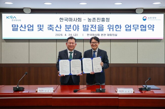 한국마사회(회장 우희종)는 지난 24일 농촌진흥청(청장 이승돈)과 ‘말산업 및 축산분야 발전을 위한 업무협약’을 체결했다고 27일 밝혔다.