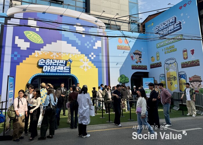 | ▲ 30일 서울 성수동에서 열린 롯데칠성음료의 팝업스토어 ‘순하리찐 아일랜드’ 현장 모습/사진=한시은 기자 |