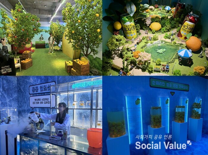 세 번째 공간인 ‘찐하게우렸섬’은 동결된 통레몬을 약 15일간 침출하는 과정을 보여줬다. 침출 시간이 길어질수록 껍질과 과육에서 과일즙이 점차 우러나오는 모습을 확인할 수 있었다. 마지막 공간인 ‘설탕뺐섬’에서는 풍선 잡기 등 체험 요소를 통해 당류 없이도 풍부한 맛을 구현한 점을 강조했다.